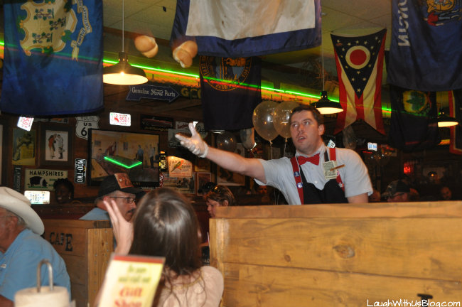 Lamberts Café in Ozark, Missouri is being sued by a customer who claims that she was struck in the eye by a flying dinner roll. How did the rogue roll become airborne? Lamberts is famous for the way that their servers toss dinner rolls to customers upon request. The servers roam the aisles of the dining area their carts stocked with fresh warm dinner rolls, tossing them to customers who raise their hungry hands. In fact, their website domain is www.throwedrolls.com. Sounds like fun to me. But the 67-year old black “pastor” of a church in north St. Louis is suing Lamberts for 250k. That’s a lot of dough.