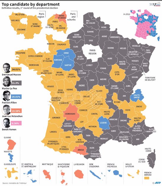 "Something interesting is happening. The maps which came out on Monday and detailed the outcome of the French elections, were telling a familiar story. A story of deep division. There are a number of such maps now depicting the Brexit vote in the UK, the US presidential elections, and its French counterpart.