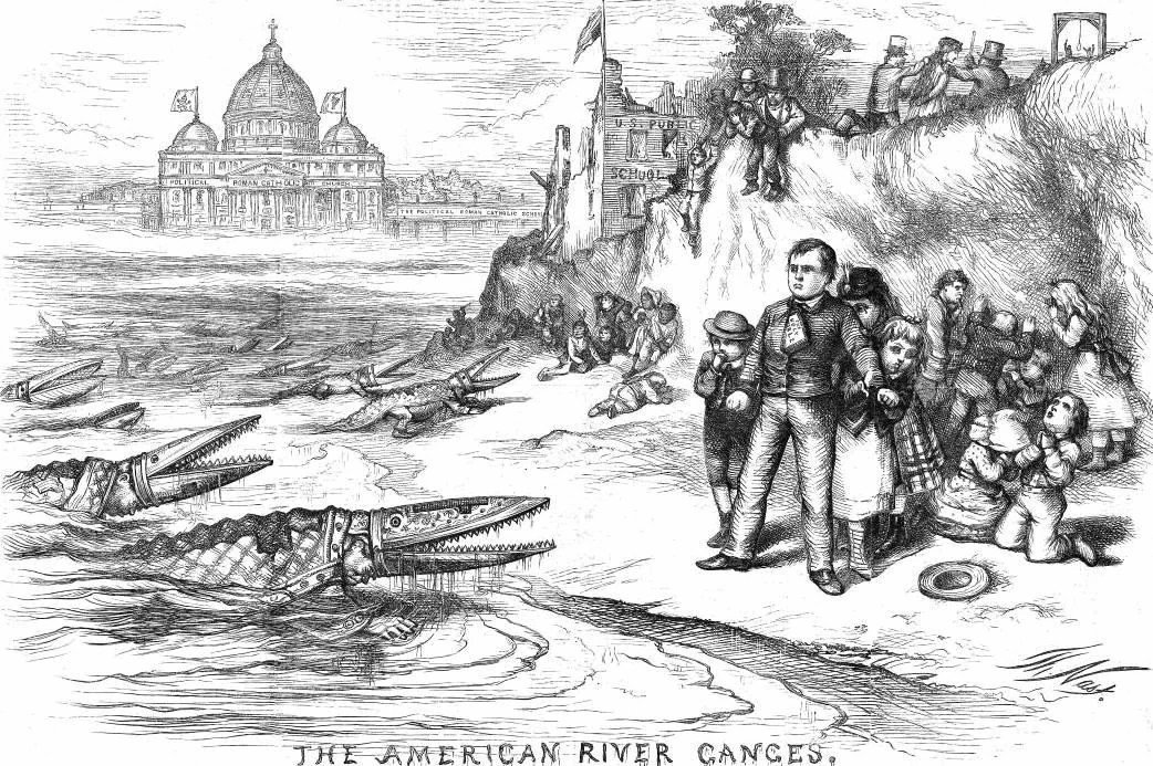 Crocodile wearing tiara of bishop. 1800’s cartoon.