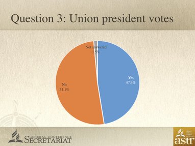 In his report, Trim stated that union and division presidents were requested to answer the six survey questions according to “what they believe is the view of the majority of members in their territory, as opposed to their personal opinion.”