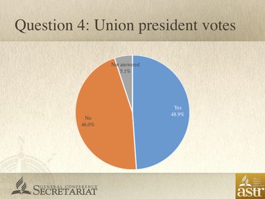 QUESTION 5: “Should presidents of unions not in compliance with voted actions of GC Sessions and of the GC Executive Committee be allowed to vote in meetings of the GC Executive Committee?”