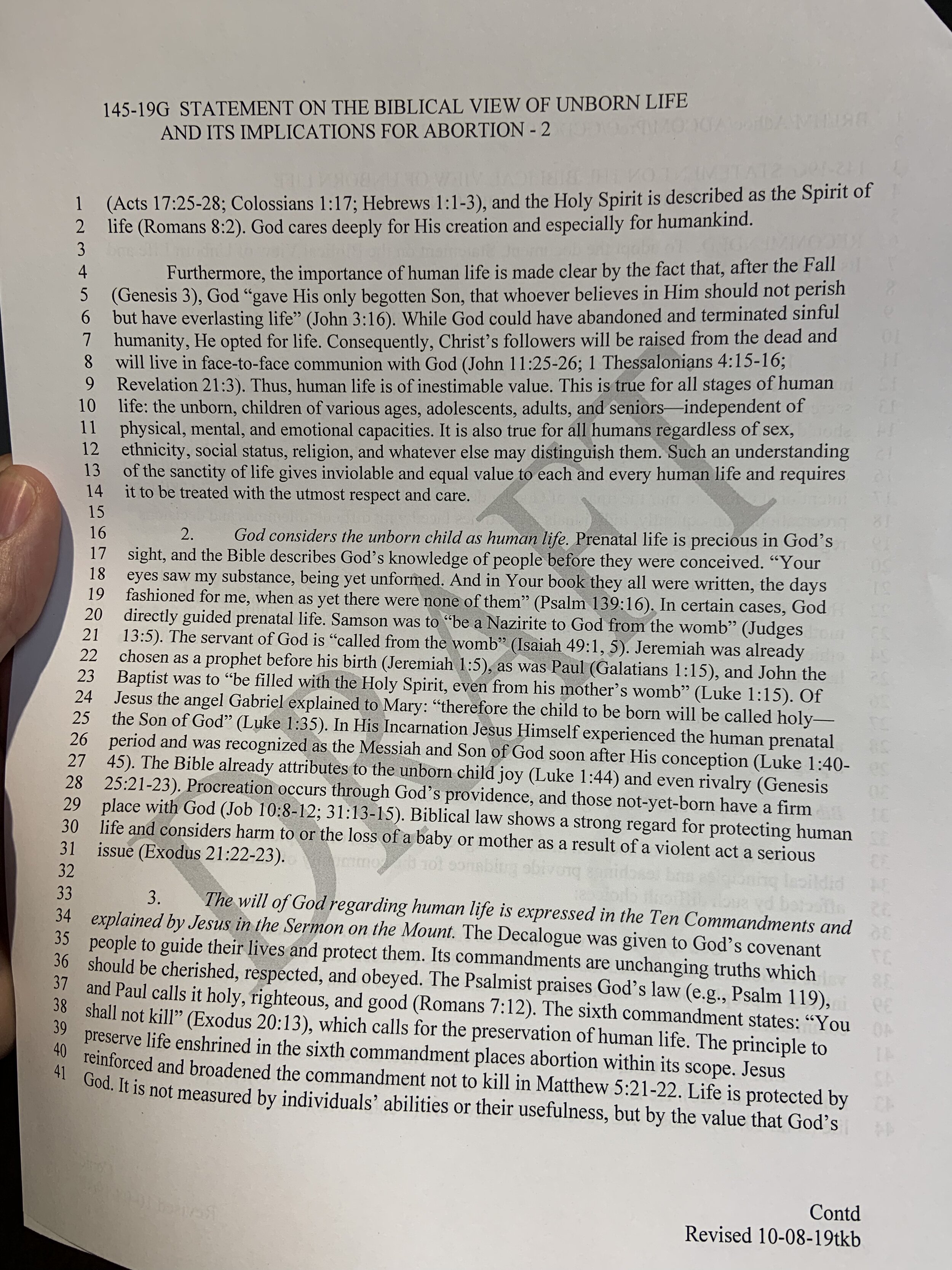 The Abortion Statement will be discussed on Tuesday. This is the official revision (#27).