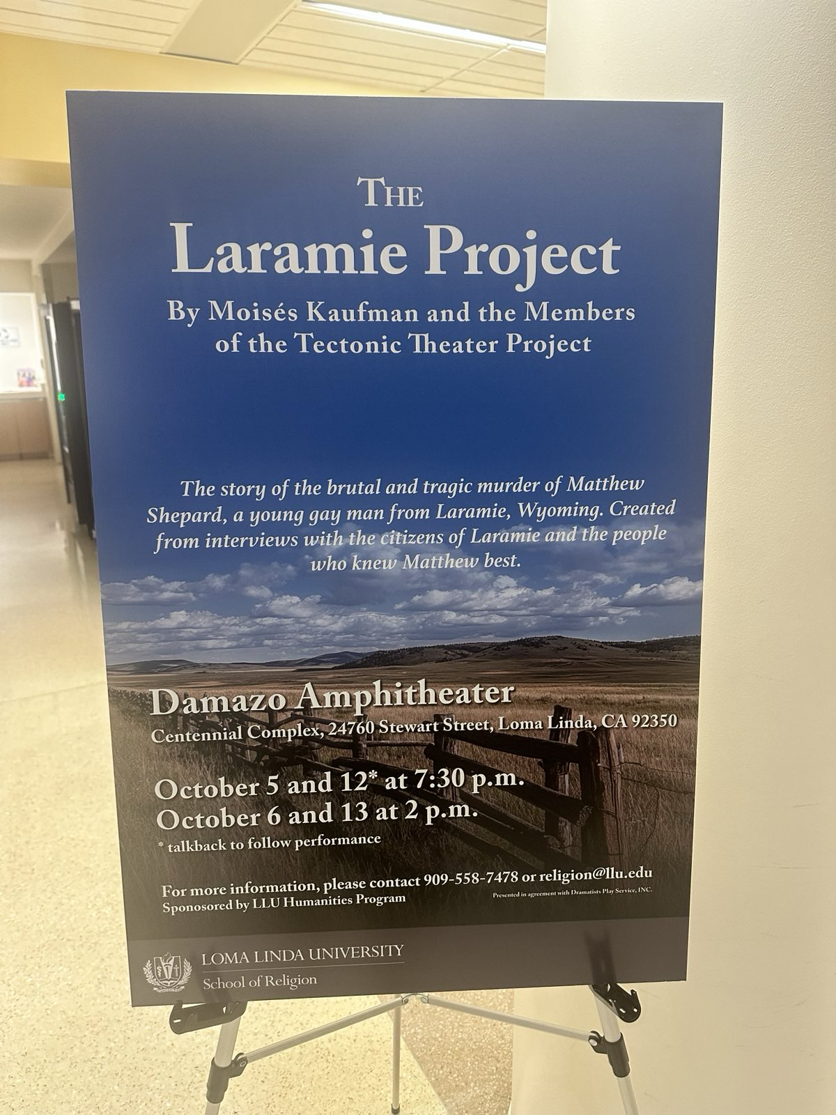 The Laramie Project is a play written by Moisés Kaufman, a homosexual theater director and playwright. The live show was presented on the Loma Linda University campus last Sabbath and Sunday, and will also be presented next weekend.