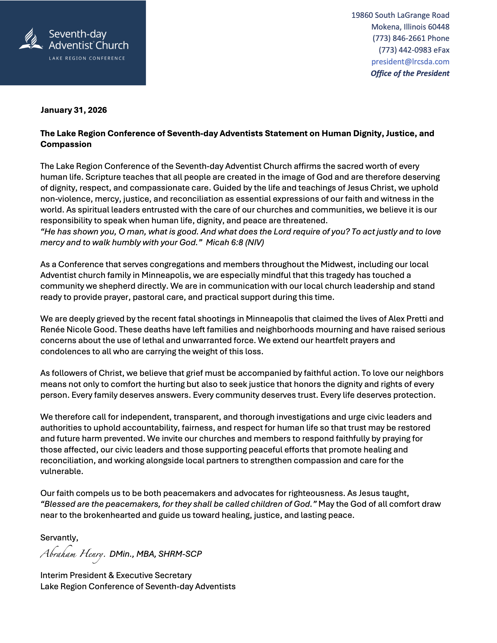 “We are deeply grieved by the recent fatal shootings in Minneapolis that claimed the lives of Alex Pretti and Renée Nicole Good.” Indeed. These wouldn’t have happened if people would not try to obstruct officers of the law. As Adventists who uphold God’s law, we of all people should respect the laws of our country.